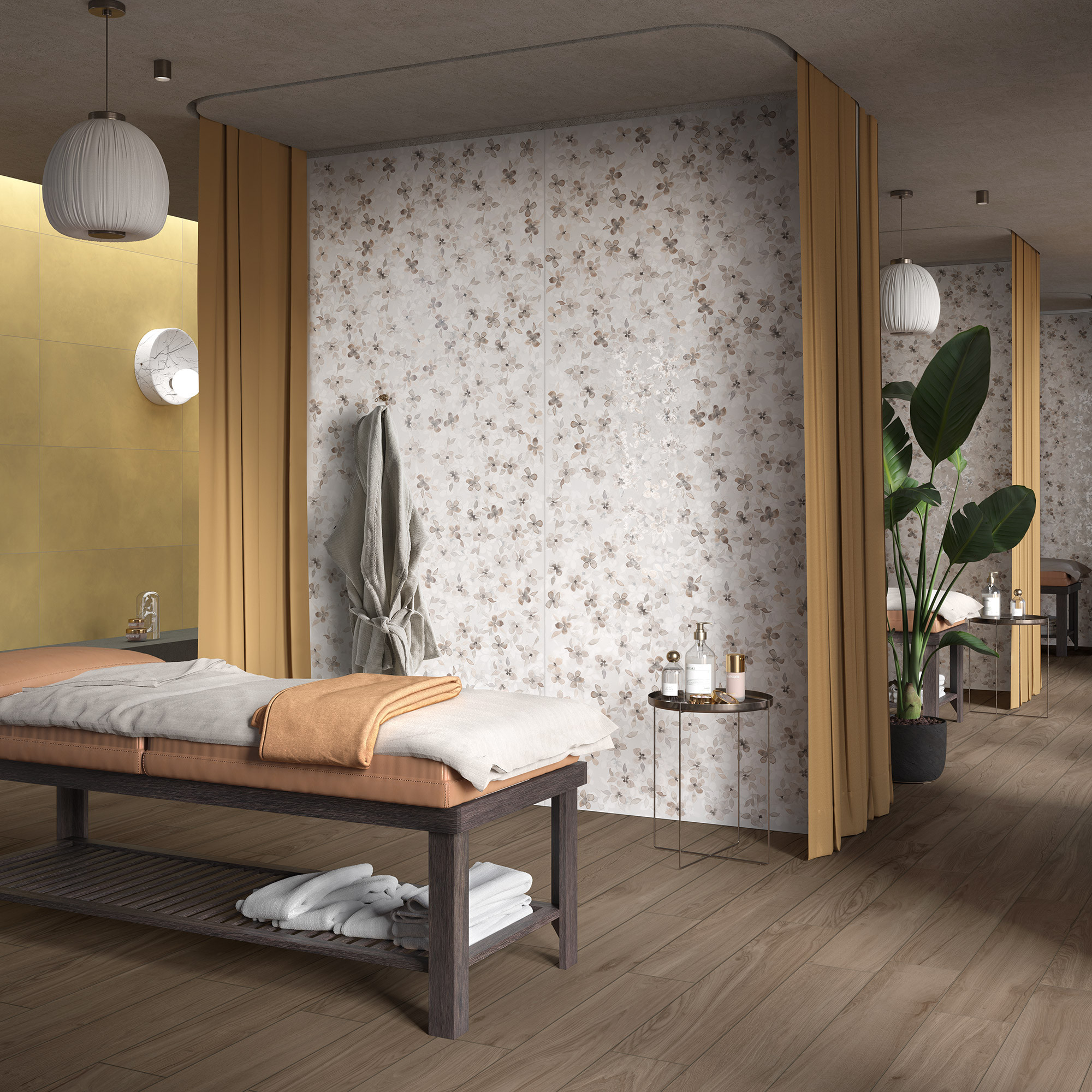 A Florim Reves tagadhatatlan luxust idéz elénk. A kollekciót az ősi alabástrom ihlette, melyet visszafogott színeken és lágy mintázaton keresztül jelenít meg a kerámiaburkolaton a gyártó. Az arisztokratikus, mégis lágy megjelenés tökéletes eleme lehet otthonunknak, ugyanakkor egy igényes szálloda burkolataként is kiválóan funkcionál. 8 méret, 4 szín, 2 lapvastagság és 2 felület közül lehet válogatni.
