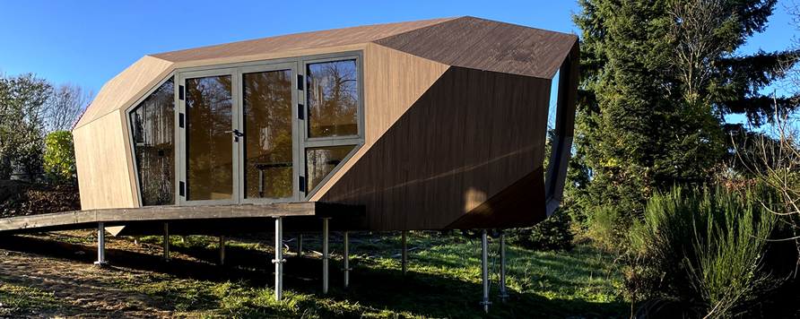 A kabin könnyen szállítható, gyorsan telepíthető, és igény szerint további egységekkel bővíthető, bármilyen környezethez és stílushoz rugalmasan illeszkedik. Megszületésében nagy szerepet játszott a BB406 FRENCH WALNUT típusú Buildbond alumínium kompozit lemez, melynek szerelt homlokzatburkolatként való alkalmazása ötvözi az innovációt és az energiahatékonyságot.