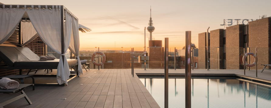 A madridi Novotel Hotel teraszának burkolásához a spanyol Exagres gyár Exadeck kerámia teraszburkolatát használták.