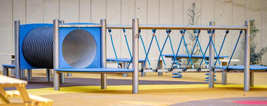 Az új játszótér gazdag és sokszínű eszközparkkal várja a gyerekeket: akadálymentes mászókák, kültéri hangszerek, érzékszervi fejlesztést segítő elemek, illatos és ehető növények, valamint különleges terápiás kiegészítők, mint a mezítlábas ösvény vagy a komplex homokozó. Ezek mind-mind hozzájárulnak ahhoz, hogy a kialakított tér valóban befogadó, inspiráló és sokoldalúan használható legyen.