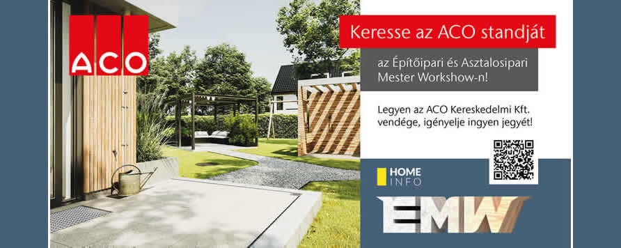 Hamarosan újra nyitja kapuit az építőiparban tevékenykedők számára kihagyhatatlan rendezvény, az Építőipari és Asztalosipari Mester Workshow – röviden ÉMW – amely az eddigieknél több szakmai résztvevővel, gazdagabb programokkal, több újdonsággal és nagyobb területen lesz látogatható. Csakúgy, mint tavaly, az ACO Kereskedelmi Kft. idén is a kiállítók között szerepel.