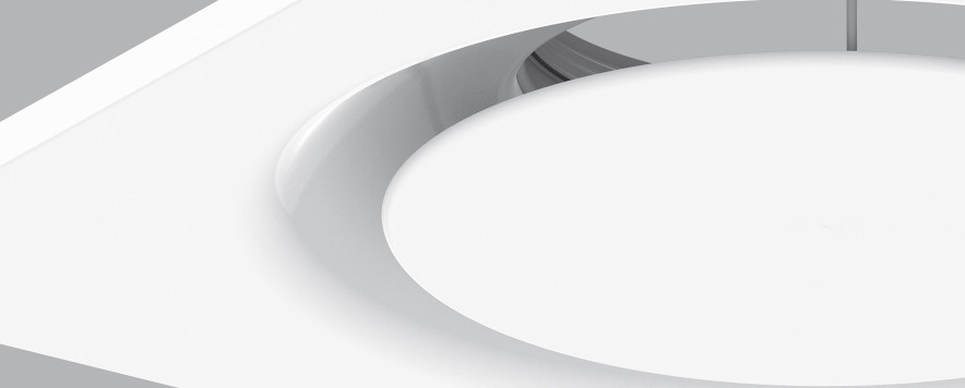 A befúvóelem kialakítása egyenletes, 360°-os légeloszlást biztosít. A látható rész minden esetben azonos marad – függetlenül a csatlakozócsonk méretétől –, így harmonikus, egységes látványt nyújt a különböző helyiségekben is, legyen szó kisebb irodákról vagy nagyobb nyitott terekről.