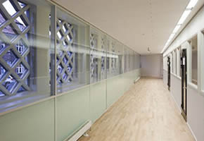 A Koppenhága északi részében található épület eredetileg az OSRAM gyár ipari létesítménye volt, amely 1953-ban épült, akkor még egyedülálló módon, előregyártott technológiával. Az utcai homlokzaton finom rajzolatú vasbeton panel burkolati elemeket alkalmaztak, amely egyedi megjelenést adott a háznak. Ennek a felületnek a megőrzése az új hőszigetelés megtervezésekor nagy kihívás elé állította a tervezőket (T-plus építésziroda). A megoldást a földszinti terek teljes átszervezése jelentette: az itt található többfunkciós előadóterem előtt egy átmeneti teret hoztak létre, amely csak részben fűtött és a hőszigetelés mértéke is kisebb itt, mint az épület többi részén. Így lehetővé vált az egyébként nem előnyös, belső oldali hőszigetelés és az utcai homlokzat védett vasbeton fala mögött, a belső síkon helyeztek el egy hőszigetelő üvegfalat. Az előadóterem és a folyosó közötti fal hőszigetelése már lehetővé teszi, hogy a belső helyiségek fűtése energiatakarékos legyen.