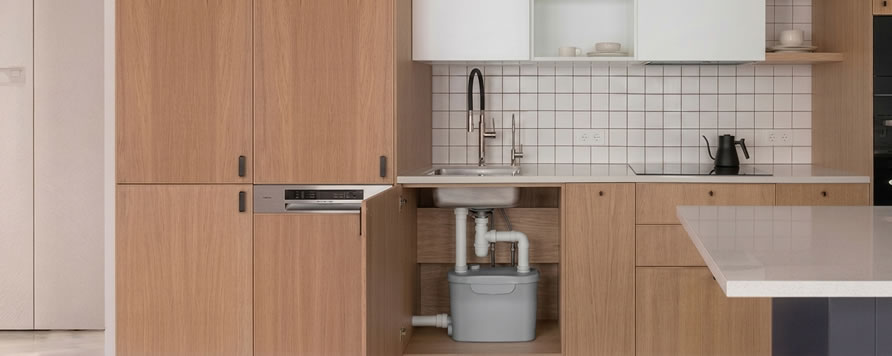 A Sanipump konyhai átemelő és zsírfogó hozzásegít a rugalmas alaprajzi kialakításhoz