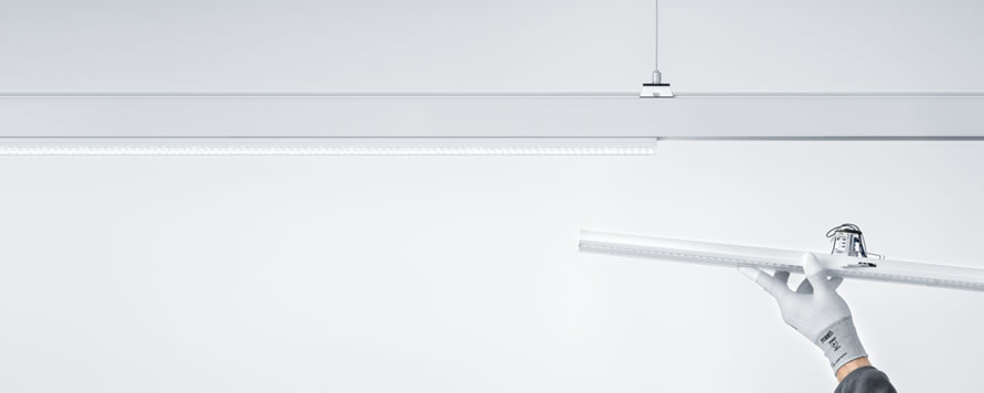 - Teljesen rugalmas csatlakozási pontok a sín teljes hosszában – betáplálás, általános és biztonsági világítás, valamint audiorendszerek számára