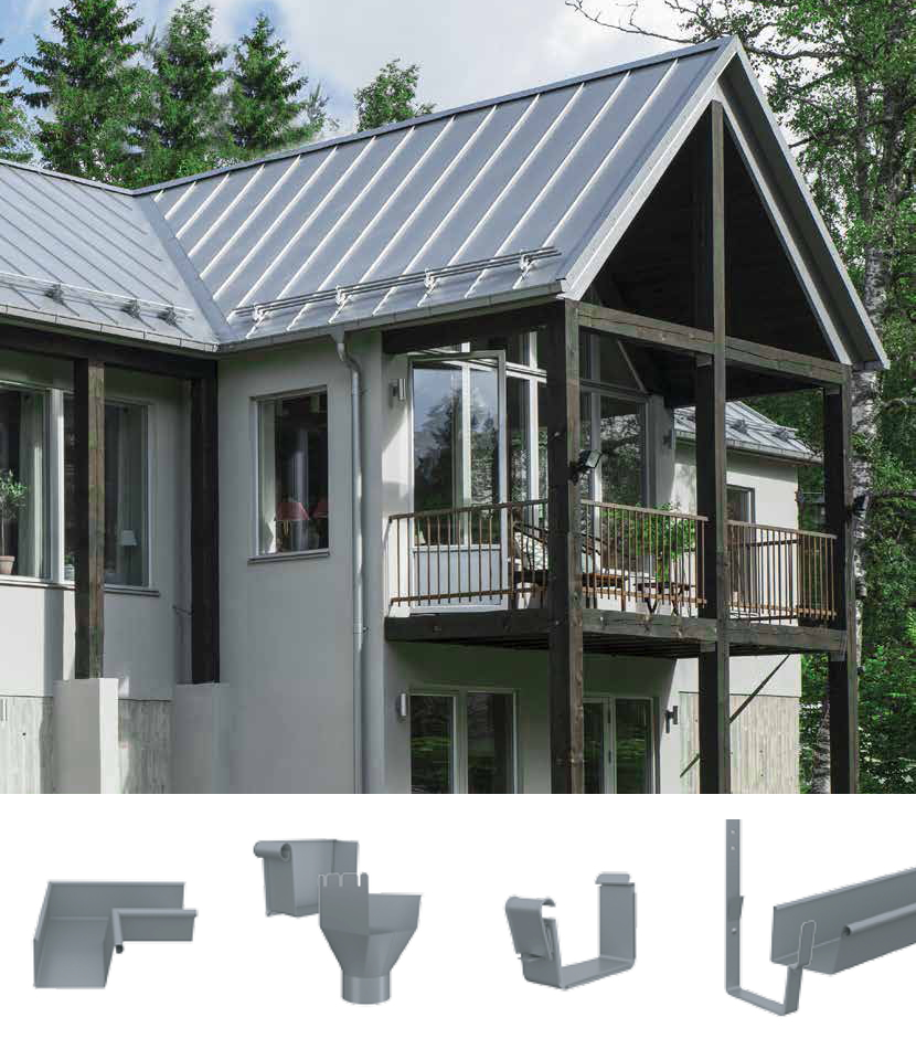 Az új vonalvezetésű szögletes ereszcsatorna rendszer is 12 Elite színben és Magestic bevonattal kapható. Az eresz külső peremén kialakított, kifelé hurkolt vízorr a Lindabtól már jól megszokott odafigyeléssel lett megalkotva.