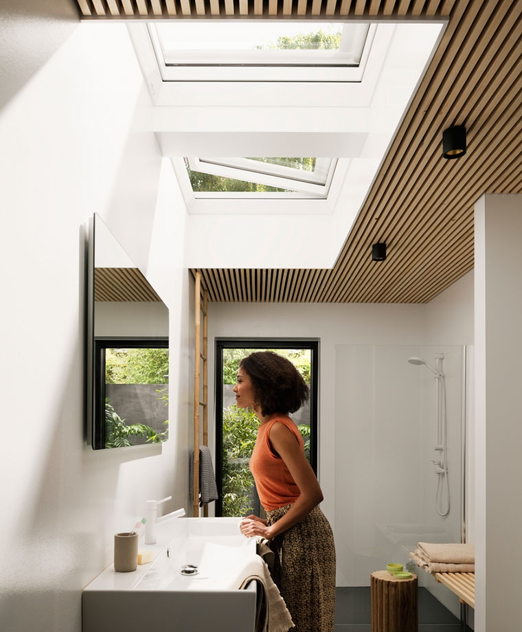 A VELUX GEL tetőterasz teljesen nyitott állapotban közvetlen kijárást biztosít a teraszra. A GEL tetőterasz felső része úgy működik, mint egy hagyományos tetőtéri ablak, így az alsó kilincses működtetésű, felnyíló felső ablakrész 45°-ig bármilyen pozícióban szabadon rögzíthető. Az oldalra nyíló alsó ablak oldalkilincses működtetésű.
